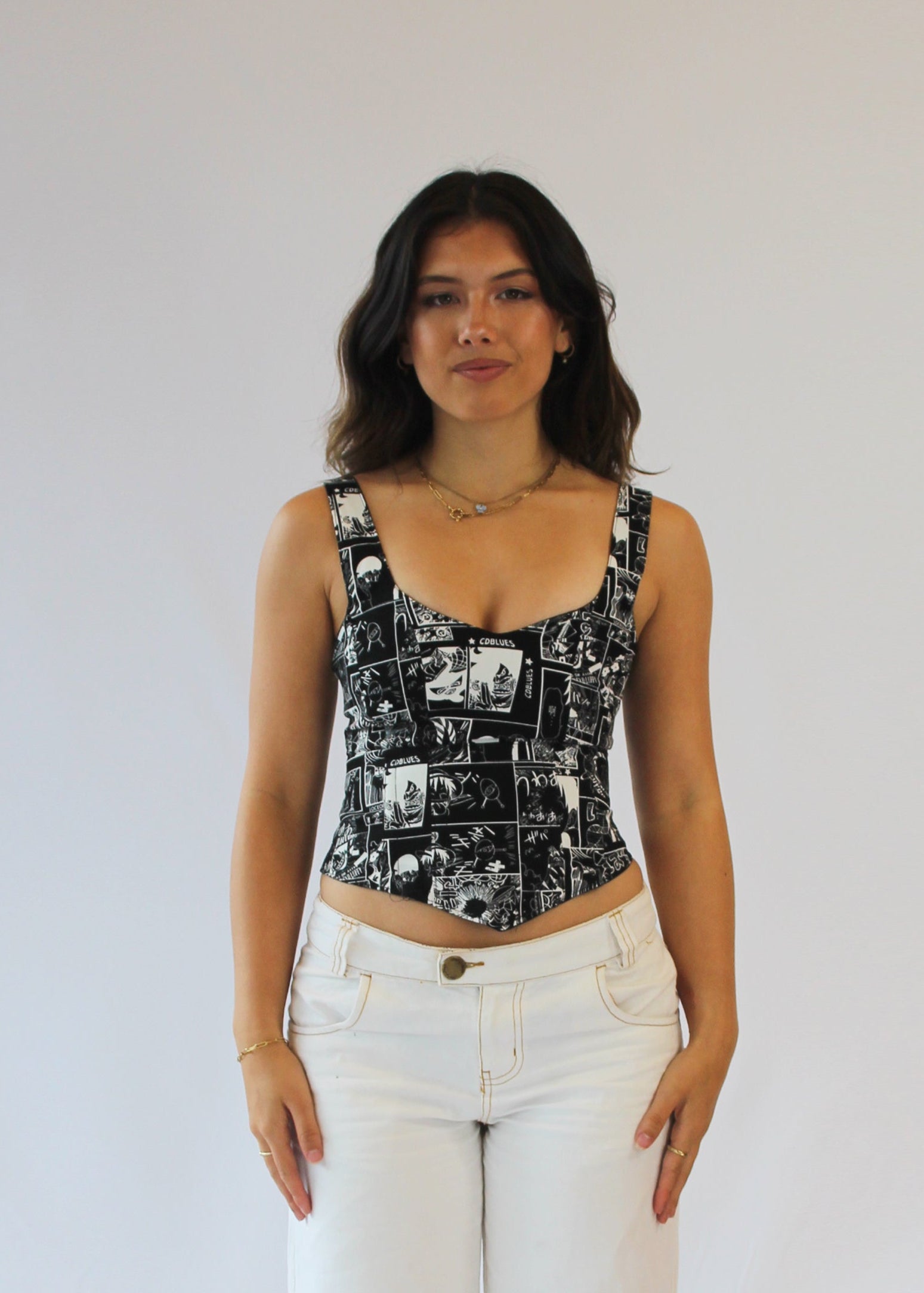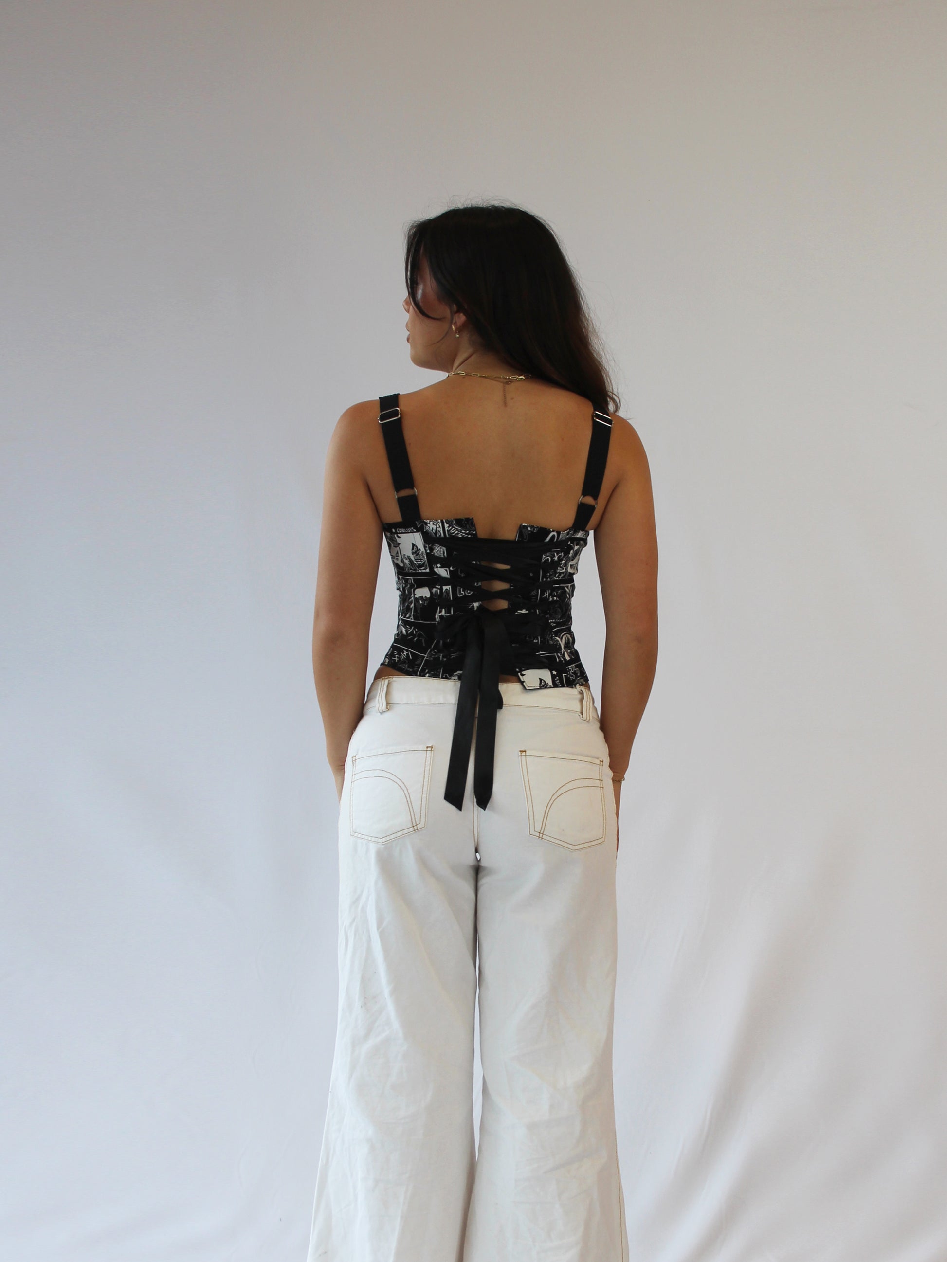 Anime corsets look amazing! From a distance, it looks like to are wearing a funky pattern, but as you get closer you can see that the pattern is made from pictures. The newspaper corsets proved that corsets you can read are super popular. Anime takes it to the next level! It’s not just fashion, it's a discussion piece.